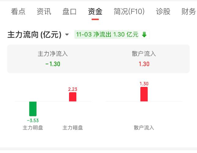 $利欧股份(SZ002131)$利欧股份当日主力资金净流出1.30亿元,其中暗盘资金流入2.23亿元,明盘资金流出3.53亿元。明盘资金呈现流出态势,但暗盘资金流入较多,主力整体持仓比例减少,结合资金行为特征,可能存在主力通过大单压价、小单低吸的洗盘操作,市场分歧较为明显。 以上数据来自同花顺,仅供参考,不作投资依据
