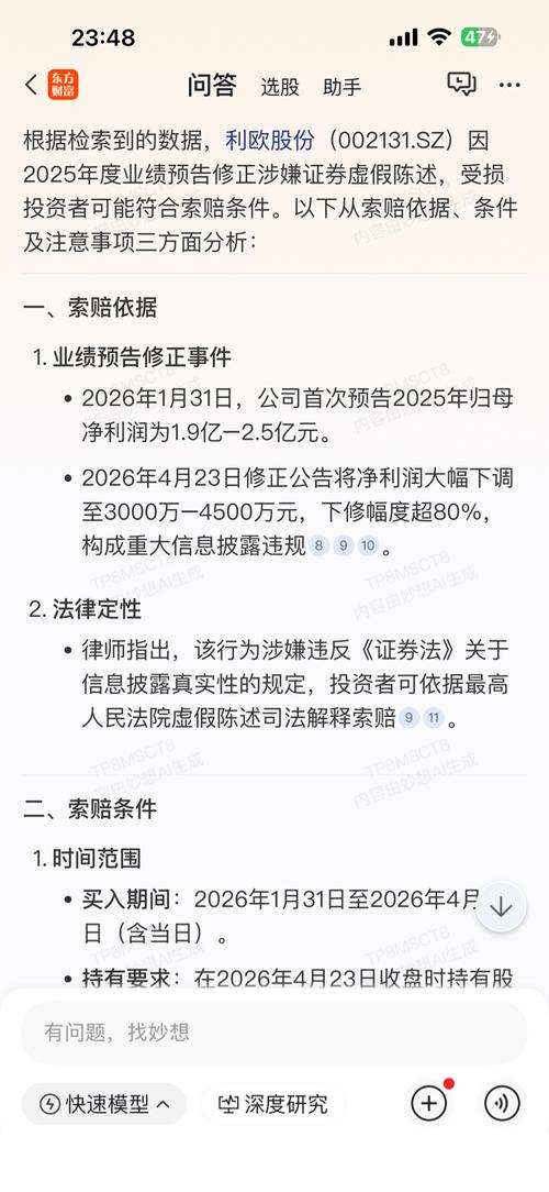 $利欧股份(SZ002131)$利欧股份(002131)于2026年4月23日公告,因涉嫌信息披露违法违规被证监会立案调查。公司此前因多项收购资产减值、业绩承诺未履以及关联交易披露不规范等问题,多次触碰监管红线,此次信披违规再次侵害投资者利益。 索赔条件: 2026年1月31日至2026年4月23日之间买入002131利欧股份,且在2026年4月24日(含当日)之后卖出或继续持有的受损投资者。 谢...