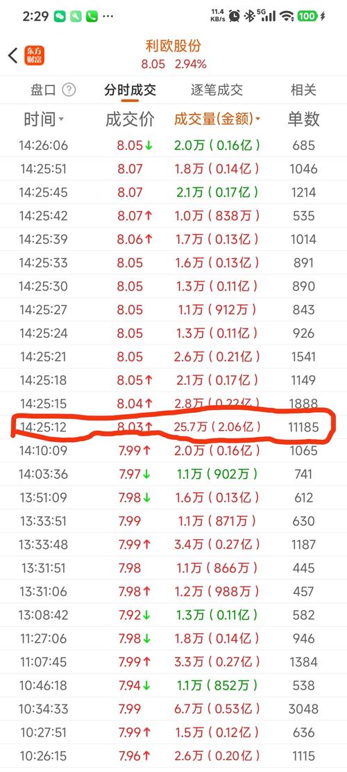 $利欧股份(SZ002131)$欧子这25.7万手(2.06亿主动买盘)意欲何为? 感觉这个是尾盘主力试盘 14:25这一笔25.7万手(2.06亿)是今天日内最大单笔成交,直接把股价从7.99元拉到8.03元,属于主力资金主动扫货,承接日内抛压、稳住8元关口,防止尾盘跳水,至少说明资金不愿跌,8元是支撑。 这是明显的主力行为,不是散户; 说明主力在8元附近有护盘动作,认可当前价位,短线止跌信号。...