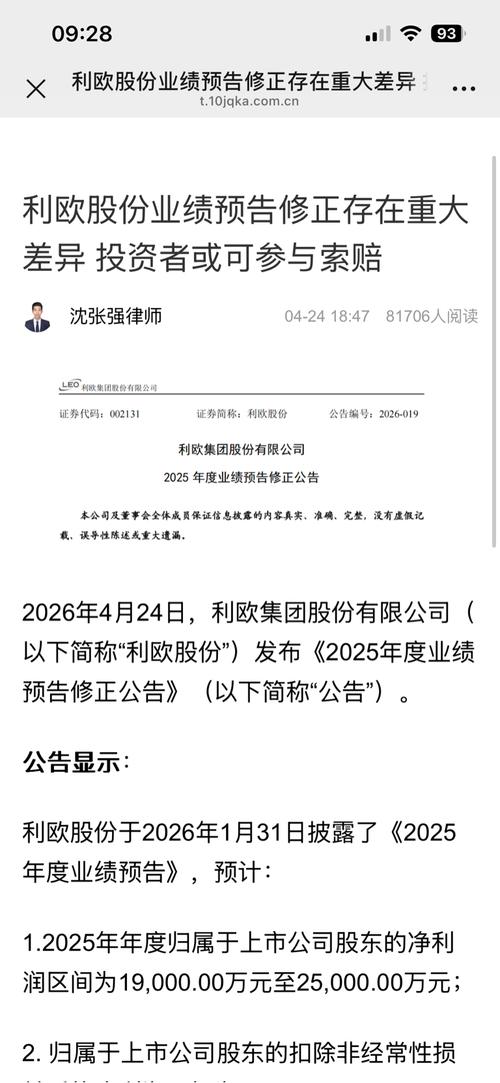 $利欧股份(SZ002131)$ 先给结论:仅凭“大幅业绩修正”本身,不能直接认定为老鼠仓或违法;但属于监管重点关注、可立案核查的情形。 一、本次利欧股份业绩修正(2026-04-23) •前次(1月):2025年净利1.9~2.5亿元 •本次(4月):下修至3000~4500万元 •公司解释:对参股公司长期股权投资重新测算、计提大额减值 •结果:Q4单季预亏5.44~5.59亿元 二、“老鼠仓”...