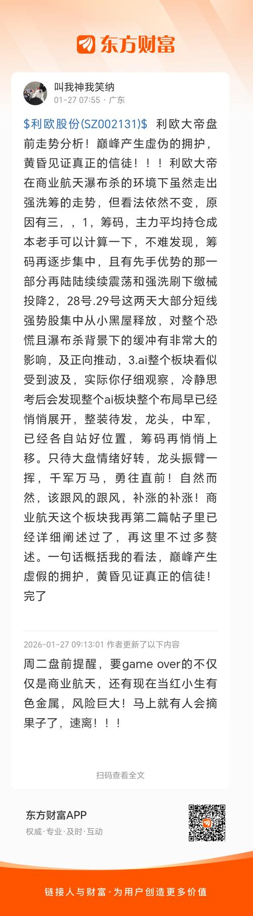 $利欧股份(SZ002131)$这唱空唱多能影响价格吗?以后我会唱反调,要买我会唱空,要卖我就唱多,开