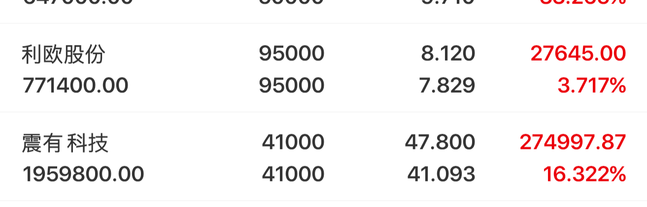 $利欧股份(SZ002131)$利欧股份依托AI液冷逻辑小幅上行全天波动很小。接下来还是老思路,只用底仓小幅度做T,围绕8元上下滚动降成本,既不格局死拿,也不随便加仓,慢慢磨差价就好。支撑位守住,耐心等板块发力即可。 $震有科技(SH688418)$商业航天异动带飞,今天直接拉出大阳线,资金关注度一下子上来了,短期趋势明显转强。46上方的支撑很稳固,主要以持股为主,真冲到49附近滞涨可以分批减点仓...