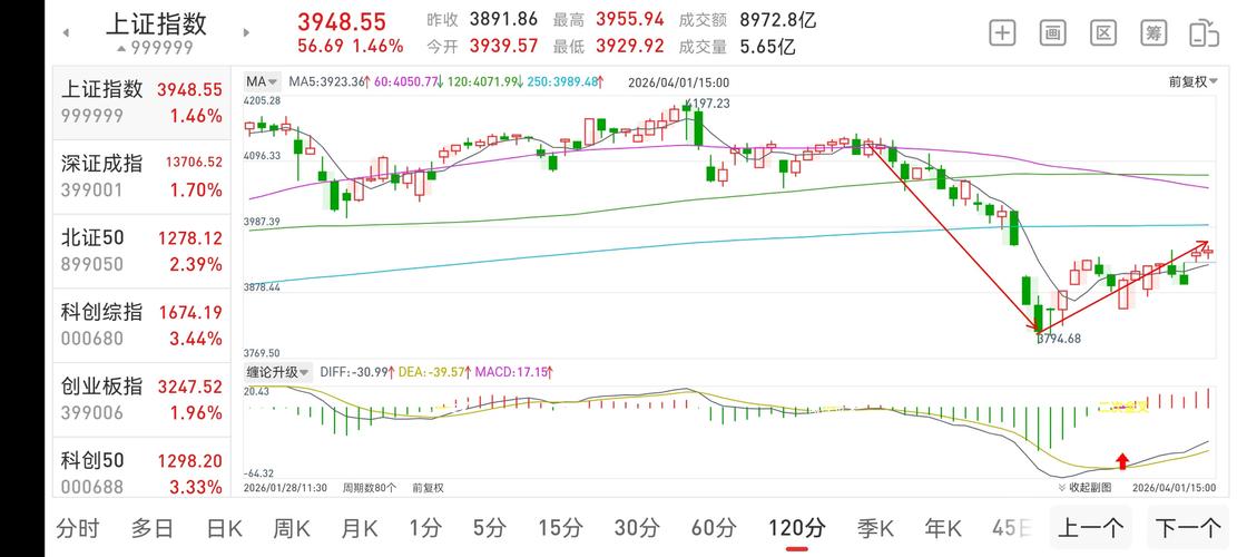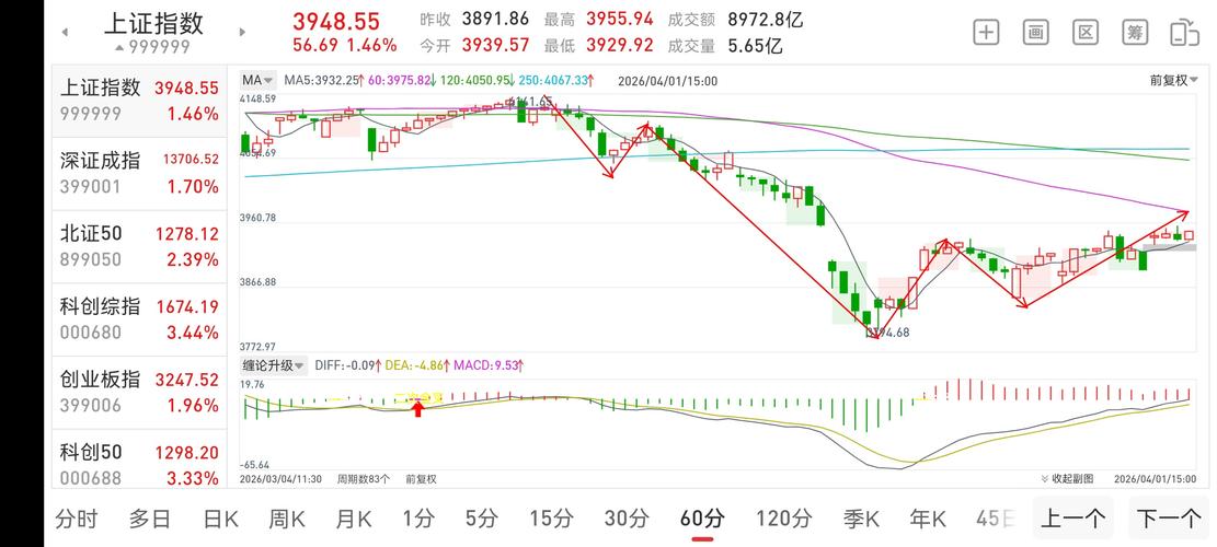 日K4.33-3.51调整应该结束,3.51一买,3.63二买,今日低价3.76可能是类二买,60分钟清晰看到3.51上升趋势中的震荡状态,今日第3小时打穿上升价格通道下轨,第4小时反抽,若明日再次回到价格通道内能不能买回来,月k1.90震荡低位向震荡高位8.08大周期上升途中的震荡趋势可能就结束,一个新的上升趋势即将开始,4.06下机会>风险。