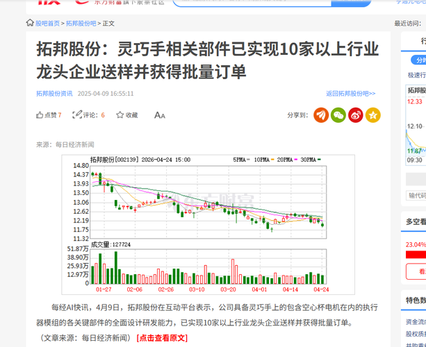 $拓邦股份(SZ002139)$千问: 结合您提供的参考资料,对于拓邦股份(002139)在2026年4月18日登上CCTV-13这一事件,可以从品牌战略、产业转型、市场表现三个维度进行深度评价。 总体来看,这是一次极具含金量的“官方背书”,标志着公司从传统制造向“具身智能”核心玩家的转型获得了国家级媒体的认可。 以下是具体的分析: 品牌与战略层面:国家级媒体的“含金量”背书 这次登上CCTV-1...