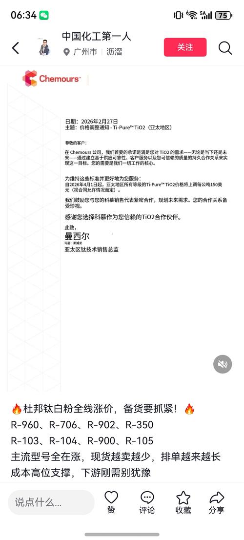 $钛能化学(SZ002145)$今天钛白粉又调价了!股价也没一点反应?