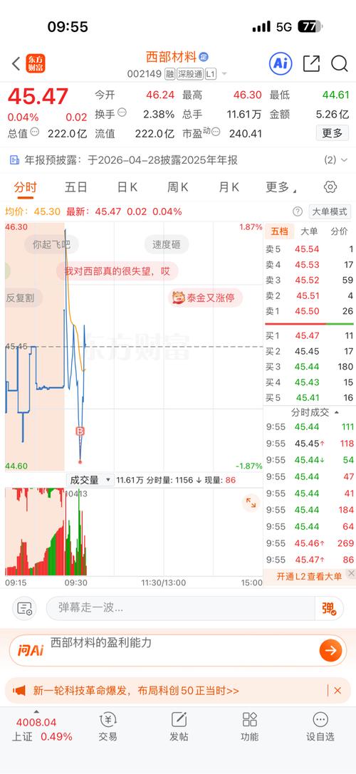 $西部材料(SZ002149)$赶快跑兄弟们,这票最近没啥意思,钝刀子割肉,做短线的扛不住