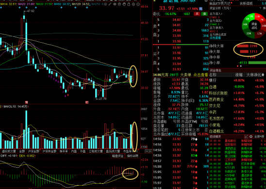 大盘动向: 上证指数:收4027.21点,涨0.01%;早盘冲高4050.62点遇阻回落,收长上影,全天成交1.03万亿。 深证成指:收14498.45点,跌0.97%;创业板指3514.96点,跌1.22%,终结5连阳。 两市合计:成交2.42万亿,较昨日放量315亿,属于放量滞涨。 涨跌家数:上涨1841家,下跌3541家,涨跌比约1:1.9;涨停68家,跌停14家,个股普跌。 盘面特征:沪强...