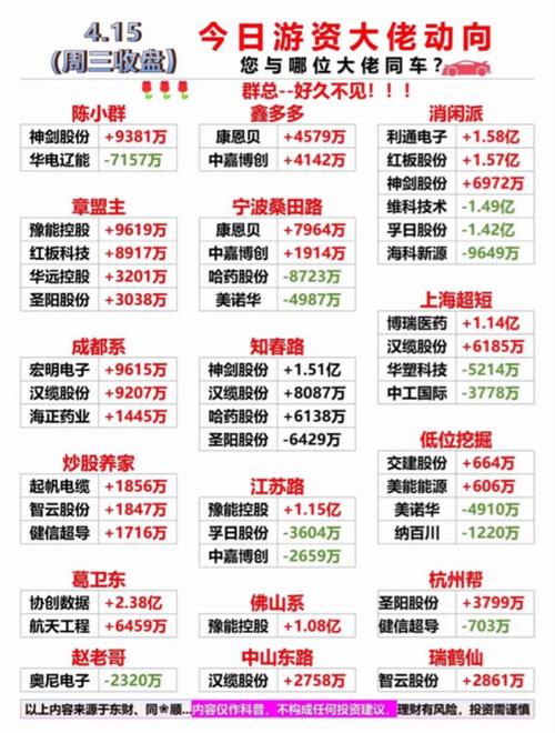 4月15日今日龙虎榜游资大佬动向大揭秘!