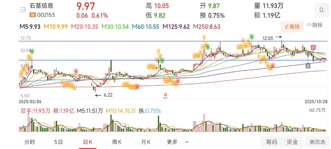 $石基信息(SZ002153)$走势看似杂乱无章,暗中有章可循,时间大约在11月中旬,目标位在14到15吧。做个记录吧