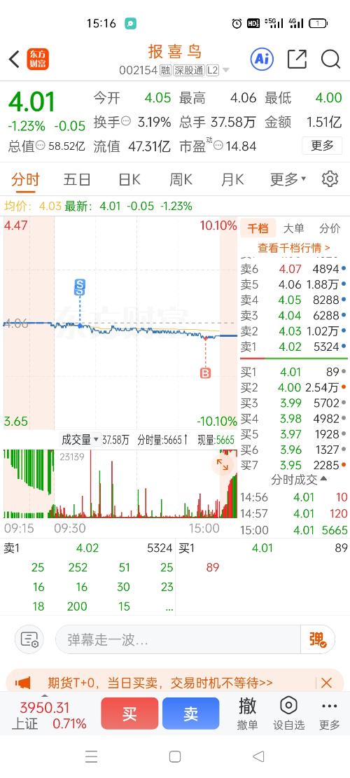 $报喜鸟(SZ002154)$被砸到4.01被动买的,也能被套