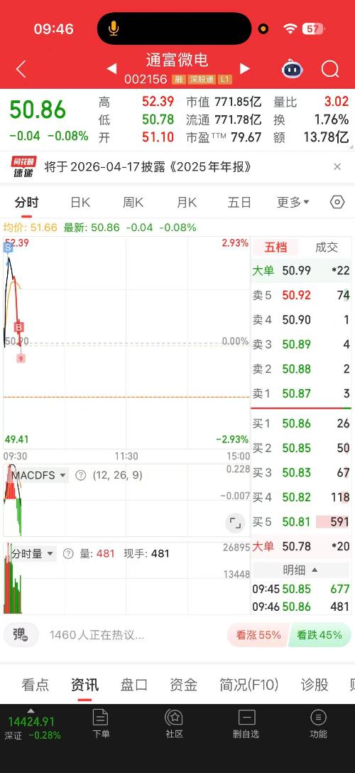 $通富微电(SZ002156)$家人们糊涂啊,居然跑了,主力可以偷偷拉了