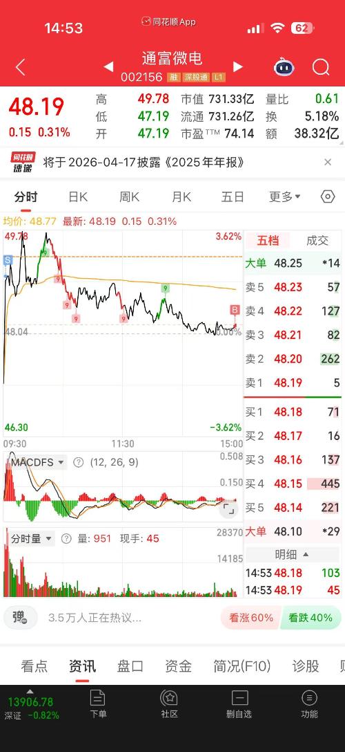 $通富微电(SZ002156)$又是跟昨天一样,冲高回落
