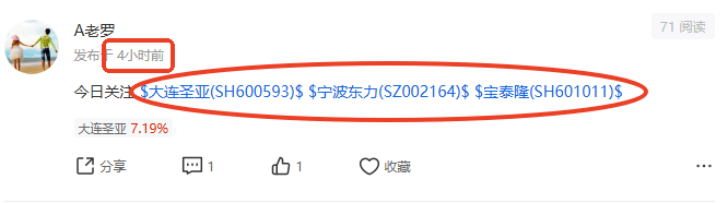今天早上分享3支,大连圣亚今日低开持续走强,差点封板:宝泰隆今日低开高开,盘中随着大盘震荡下调,午盘重回均线上方,日线形成金叉;宁波东力低开高走,冲高后量不够,随之而来的大盘震荡下调 天际股份冲高走了,收获210个(出局)$天际股份(SZ002759)$ 目前持有:通富微电,大为股份,南京港,沃森生物$通富微电(SZ002156)$$大为股份(SZ002213)$ 金财互联(新进),中马传动(新进...