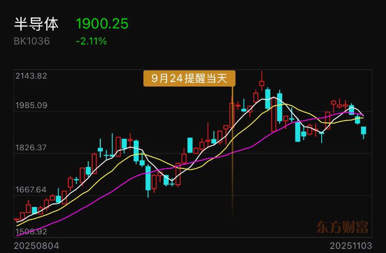 涨的时候贪心舍不得卖,跌的时候不甘心死扛。 我从去年半导体的触底乃至今年的见顶,我都给了足够多的提醒。虽然时间上和点位上不是完全一致,但事实胜于雄辩,拉长周期来看,那一点点误差可以忽略不计,因为任何人都做不到买到最低卖到最高。 如下图所示(半导体触底提醒) 注意红圈内的时间节点是2024年9月13日,结果9月24日迎来了首轮行情启动。而去年9月时,我一路安慰大家至暗时刻即将退去。 再看看今年9月2...
