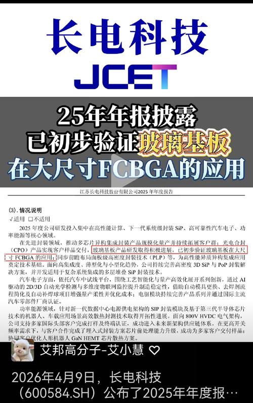 $沃格光电(SH603773)$$长电科技(SH600584)$$通富微电(SZ002156)$ 刚刚长电科技发布的年报揭示,“玻璃基板产品取得积极进展,已初步验证玻璃基板在大尺寸FCBGA的应用”,玻璃基板替代ABF载板成为现实。这将改变ABF载板味之素一家垄断、长期缺货涨价的现状,市场空间巨大!同时长电还前瞻性布局面板级高密度封装技术(PLP),也与玻璃基相关。 另外通富微电早在2024年Q4...