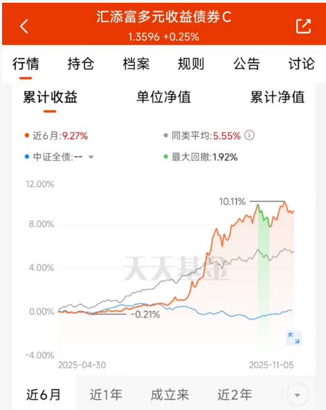 我最近调整了自己的投资组合,增加了$汇添富多元收益债券C$(470011)的配置比例。原因是现在市场不确定性较大,纯权益产品波动太大,纯债产品收益又有限。而这种“固收+”产品在两者之间取得了较好平衡。它近三年的年化收益率超过6%,显著高于兴业收益增强债券C(002158);同时最大回撤控制在较低水平,波动小于权益产品。这种平衡性产品特别适合当前市场环境。讲真的你现在去买股基其实不太稳,用这个基金既...
