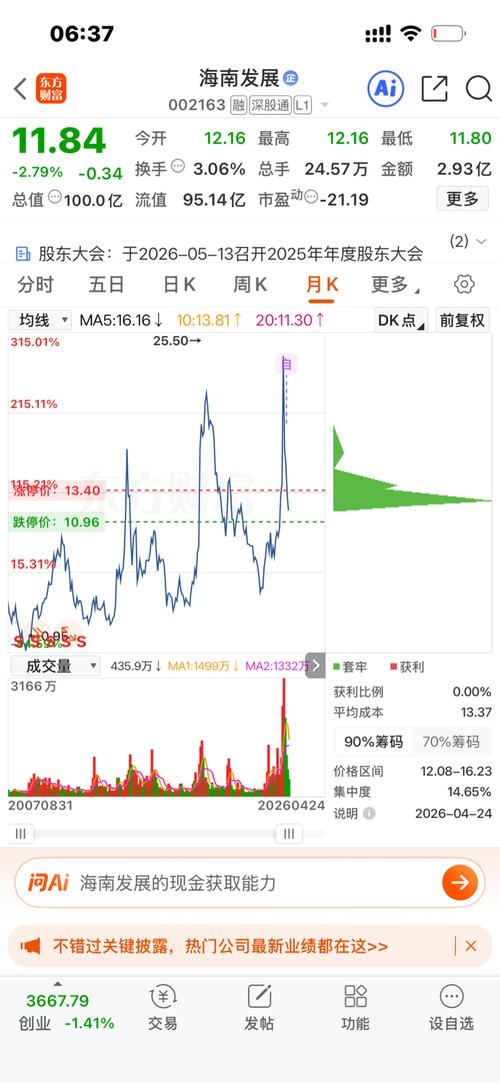 $海南发展(SZ002163)$这票真的发展不起来了,从2025年12月31日25.03至今天的11.84元,每天都在创新低,能赚钱的就基本就是每天做T了,今天进,明天出了,如果等回本的话,基本没什么机会,因为你不知道他什么时候止跃的,我相信很多人,20多的本补到16至12元之间了。不建议新人进来抄底,你抄底他抄你家