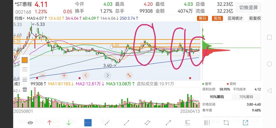 $*ST惠程(SZ002168)$60日线4.09那么难拿下吗?