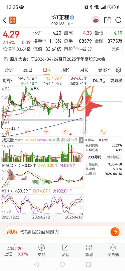 $*ST惠程(SZ002168)$能不能拿下压力位4.38啊