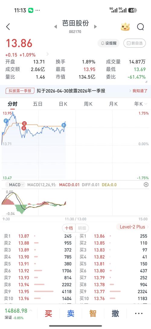 上午尾盘挂单13.88出了一半,不知道是对是错,不知道下午能不能接回来,上14就接不回来了下午
