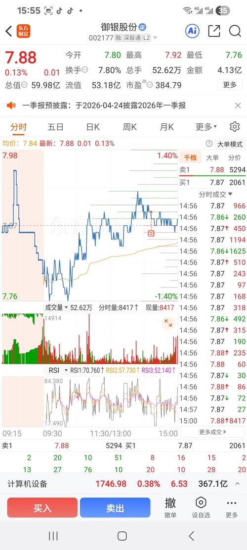 $御银股份(SZ002177)$昨天割的,出去今天赚回来了!这家伙今天怎么还在织布