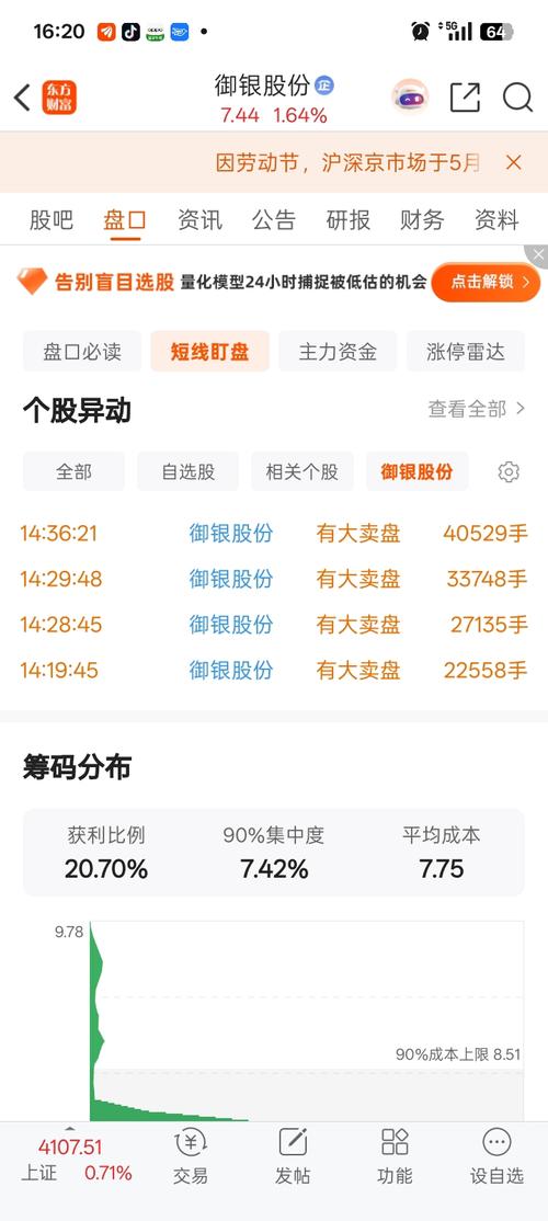$御银股份(SZ002177)$ 预测一波收盘价7.43±0.01