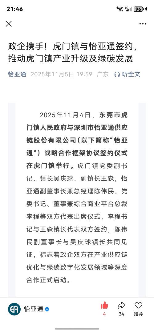 $怡亚通(SZ002183)$怡亚通,虎门政府合作 这是一个积极的信号!未来的中国硅谷产生了!