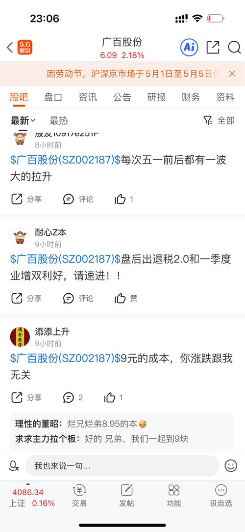 广百这一波杀的够狠,这棋下的够大,这格局布的够远,每天都能听到韭散们无奈割肉的声音,廉价筹码掉落地上的声音以及主力捡起来放入麻袋的声音,韭散们,我给你们打打鸡血吧,广百二季度将亏转盈,央行降息也给你安排中,粤芯股份和中科宇航正赶去敲钟上市的路上,广百注入旗下资产的国资改预期也不远了,卖广百的将赚大钱,同意的点赞
