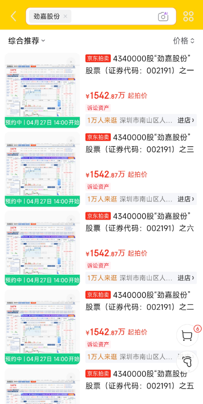 8440万股劲嘉股份股票上拍京东