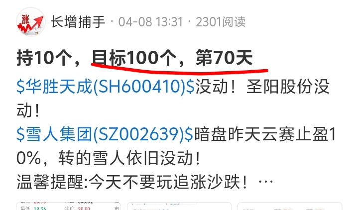 $华胜天成(SH600410)$拿5%全部止盈切到了雄韬股份。大族没动! 暗盘周五$大东南(SZ002263)$转场的$融捷股份(SZ002192)$继续没动! 实盘战绩就是最硬核的底气!稳扎稳打步步为营,守得住耐心,终能等来账户持续飘红的高光时刻! 特别提醒:本内容仅为个人记录,不构成任何投资建议,切勿盲目跟风。股市有风险,投资务必理性! 喜欢我风格的,点赞留个“188”我就知道你在!不喜欢?喷...
