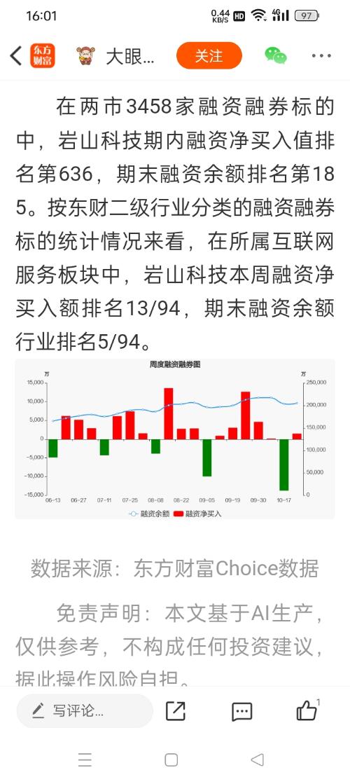 岩山科技在两市3458家融资融券标的中,岩山科技期内融资净买入值排名第636,期末融资余额排名第185。