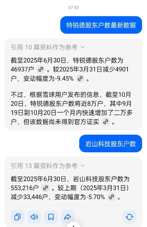 $岩山科技(SZ002195)$$特锐德(SZ300001)$股东户数网络传闻