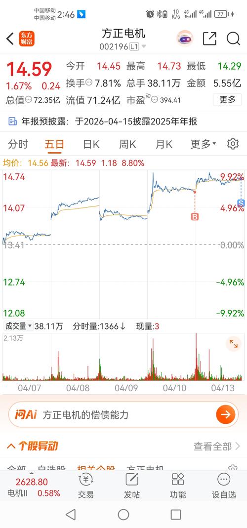 $方正电机(SZ002196)$没本事的东西,拉尾盘,明天又是低开了