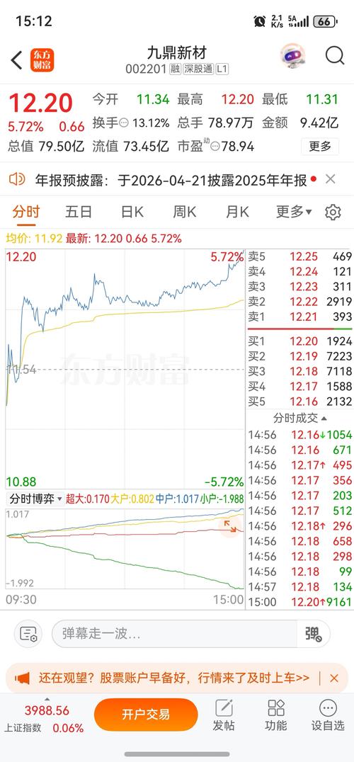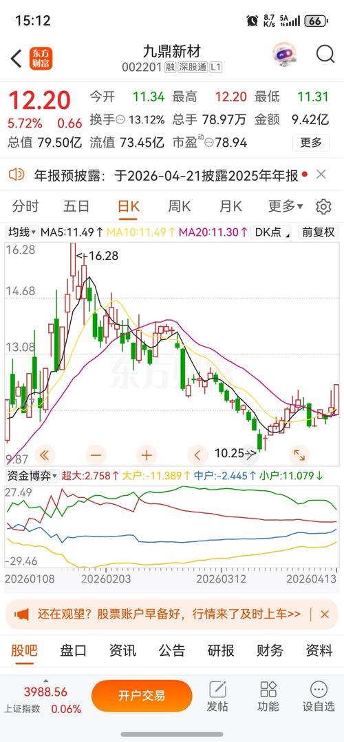 $九鼎新材(SZ002201)$长压12.15突破了,这标志着长压之上会有大阳或涨停板,关注低吸机会,随机翻到的,不推荐