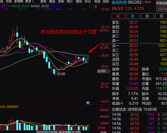 光通信是今年科技股发展主线,但是,很多个股已升幅较大,接下来主要只是波段性行情且时间幅度不一定比金风科技好;而一季度业绩(扣非)已增长65.54%的金风科技,做为全球第一的风电设备企业,其市场正处于高景气、高增长、出海加速、盈利修复的黄金期,国内年新增装机也已迈入亿千瓦级。2月欧盟要调查金风补贴问题(27年才有结论),一点不影响金风高速发展,欧盟现才1.3GW订单,25年10月单沙特就增价3GW订...
