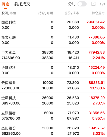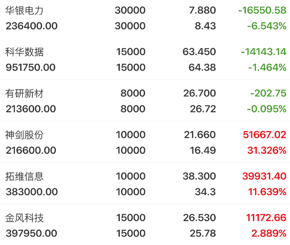 早盘开局直接走弱,午后紫金逐步回流主线,赚前效应才有所修复,但整体还是结构性行情。板块轮动上,今天紫金彻底抱团AI科技硬盒赛道,PCB、GPU、半导体、算力硬件全线宝发,成为盘面唯一的主线,而前期活跃的AI应用、光伏、油气、白酒等板块即体走弱。 二、持仓分析 华胜天成 今天华胜天成的走势不及预期,周五加仓算是踩了个坑。这票是AI算力赛道的标的,之前跟着AI主线走了一波反弹,但是没想到今天AI板块出...