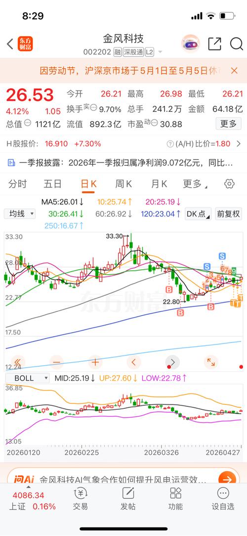 风险提示:本文为个人跟踪标的复盘记录,不构成任何投资建议,不做买卖推荐,市场有风险,投资需谨慎。 个人跟踪标的(仅供参考,不构成投资建议) $金风科技(SZ002202)$ 公司是国内风电设备全产业链企业,主营风电机组制造与风电技术服务,受益于国内风电装机需求释放。业绩层面,2025年归母净利润同比增长,2026年一季度盈利持续提升,风机销售与海外业务稳步推进。 昨日成交量较前一交易日有所萎缩,日...