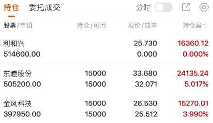 $多氟多(SZ002407)$ 今日实盘持仓记录: 继续坚定持有永鼎股份、探路者,早盘根据盘面节奏,新布局金圆股份。 永鼎股份:核心重仓,趋势稳健,继续持有,探路者:波段持仓,浮盈良好,持股不动 金圆股份:早盘新开仓,继续跟踪后续走势 个人持仓记录,不构成投资建议,股市有风险,入市需谨慎。$利欧股份(SZ002131)$$金风科技(SZ002202)$