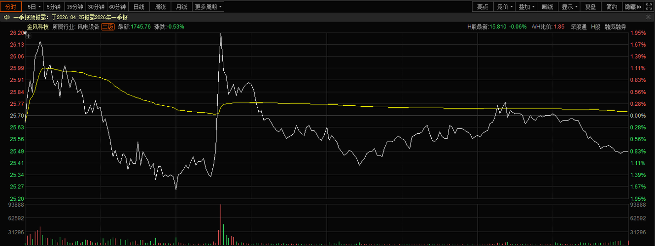$金风科技(SZ002202)$ 汇报1【天风电新】金风科技H再call:26Q1业绩大超预期,国内陆风盈利反转-0425 ——————————— 26Q1公司营收154.9亿元,同比+63%;归母净利润9.1亿元,同比+60%。 此前市场预期6-7亿元,最后Q1归母净利9.1亿,大幅超市场预期,主要是以下2点: 26Q1转让风场100MW,是计入投资收益,参考25H1的100MW转让利润为1.4...