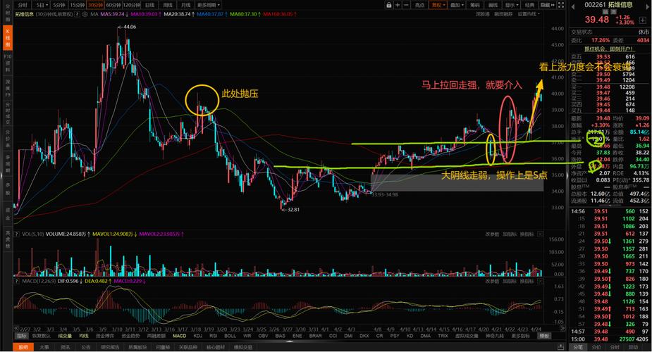 $拓维信息(SZ002261)$$金风科技(SZ002202)$$申通快递(SZ002468)$ 今天就只讲拓维信息了,金风科技和申通快递可以参考前面的文章,不多赘述。 消息面没啥大消息,算是预期之内的中性,DeepSeek-V4全面适配昇腾平台,已引发阿里、腾讯、字节等巨头规模化采购,为后续算力部署铺路。 4月21日的一根大阴线,在30分钟级别走弱形成卖点,之后两根大阳修正,回踩后到2号位置,没...
