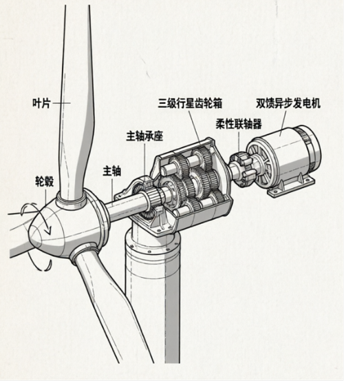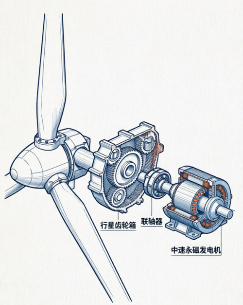 $金风科技(SZ002202)$$明阳智能(SH601615)$$中国巨石(SH600176)$ 一、技术条件分析 1.风力发电机组的传动链技术 将风轮捕获的风能通过机械传递路径输送至发电机,并完成扭矩传递、转速转换、载荷支撑与振动控制的整套动力传递系统。它是风电机组的核心机械系统,直接决定了机组的性能和可靠性。风力发电机组的传动链技术主要分为三类:双馈异步(Doubly-fedInduction...