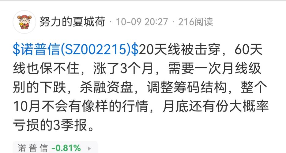 $诺普信(SZ002215)$今天不涨3个点,以后禁言了。
