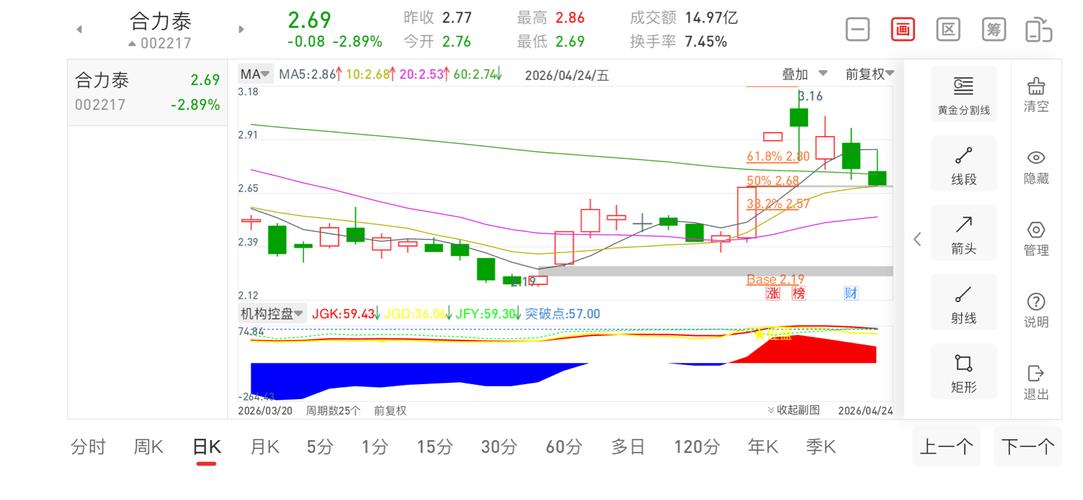 $合力泰(SZ002217)$已经回抽到黄金分割线0.5位置了