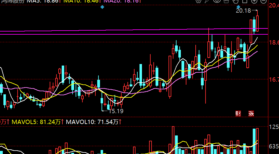 明天短线策略:此股明天早盘在10点45分之前给出价格没有盖过今日高点20.18,也就是明天15分钟级别头3根K线没有创出新高,就要警惕今天K线前一根高点的19.85作为超短周期级别的减仓动作。