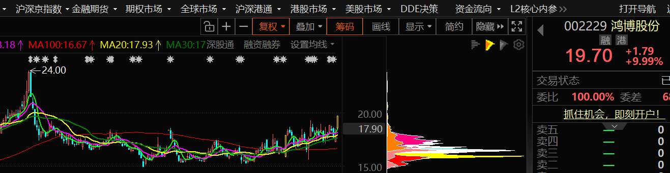 $鸿博股份(SZ002229)$这破玩意一个板就干进人气榜前五, 两个板的时候不得干到人气榜第零