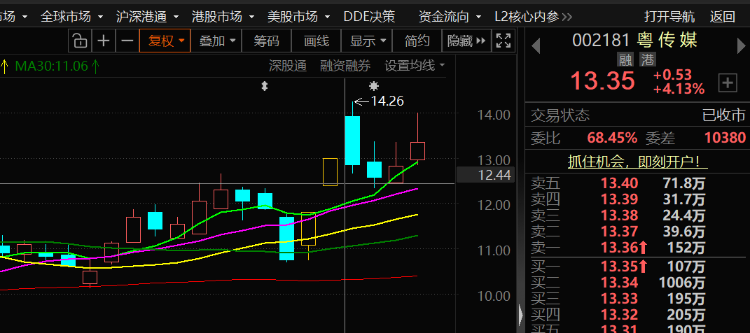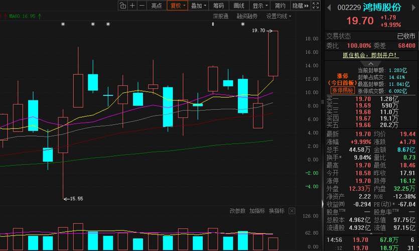 $鸿博股份(SZ002229)$无量突破,东财排前,高开低走