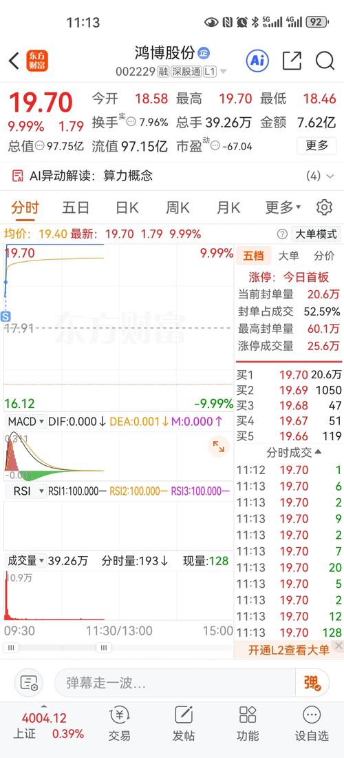 $鸿博股份(SZ002229)$昨天好多2000.3000手大单进来就发现不对,今天秒涨停就是不让散户进了,坐等3个板再说