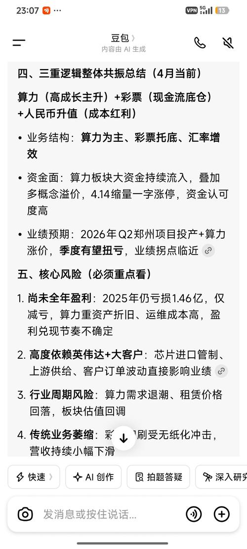 说算力租赁正宗程度,鸿博绝对排前三,主板里面除了利通,这个就是最正宗的,但是这个股走势不怎么行,没有强庄坐镇,可能是亏损的原因,没有强力资金愿意坐庄,最近这两个月的走势很平庸,涨停寥寥可数,回调起来也狠,还不如奥德瑞的走势好。
