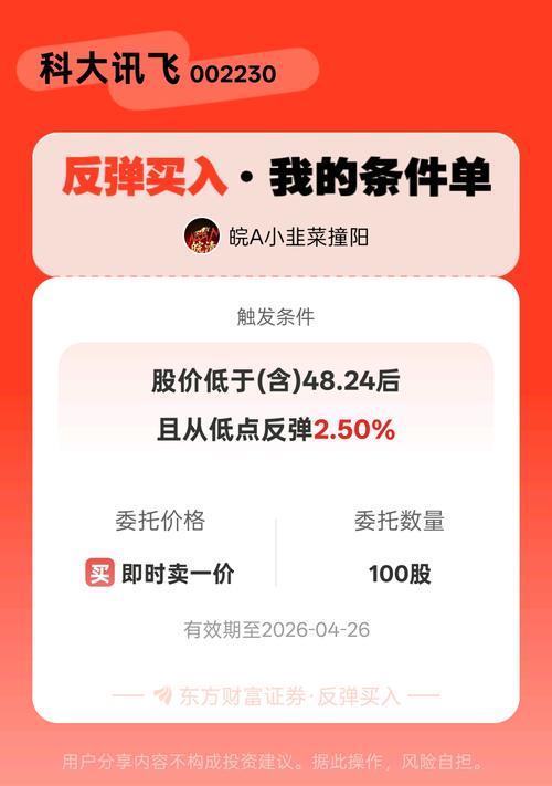 #条件单交流##反弹买入晒单#一位股神设置了一个反弹买入条件单,接下来就是见证奇迹的时刻~$科大讯飞(SZ002230)$
