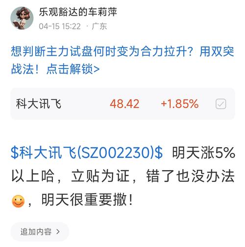 $科大讯飞(SZ002230)$注意48.1突破,突破就看高50.6,盯好了,冲过去买进